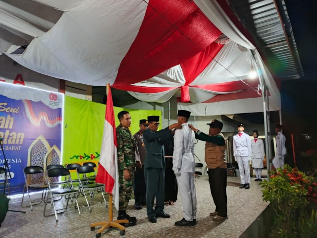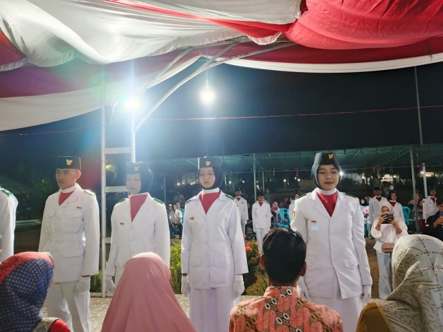 Malam Jum'at, 15 Agustus 2025, suasana haru dan khidmat menyelimuti acara pengukuhan Pasukan Pengibar Bendera (Paskibra) Kecamatan. Acara ini dihadiri oleh 28 anggota Paskibra bersama para wali mereka, serta disaksikan oleh seluruh tamu undangan yang hadir, termasuk Ketua PHBN, Bapak Camat, Kapolsek, Danramil, Kepala Sekolah, para guru, dan orang tua.