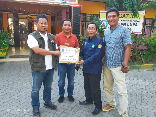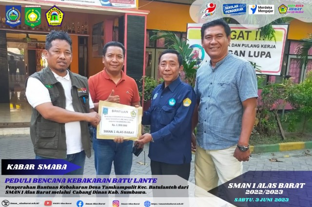 Sesuai dengan instruksi KCD Sumbawa, SMAN 1 Alas Barat turut memberi bantuan donasi kepada para korban yang diserahkan secara serempak melalui KCD SumbawaSumbawa pada hari Sabtu (3/6) lalu.