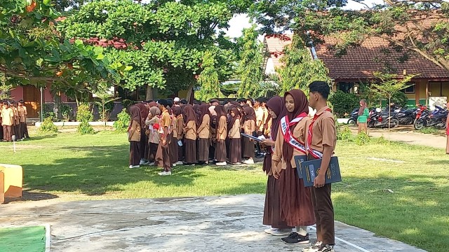 Yang diikuti oleh seluruh guru dan siswa/i di lapangan upacara