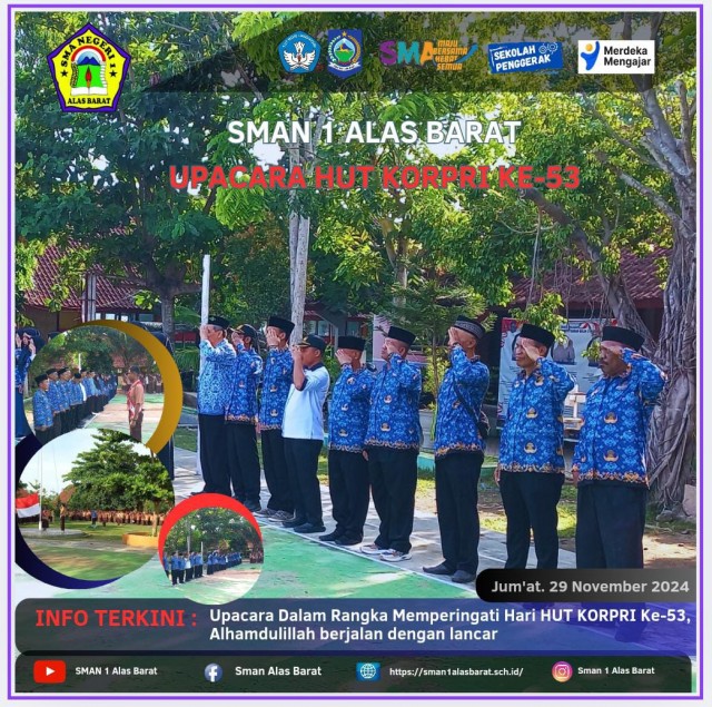 TERKINI: Selamat datang di website resmi SMA Negeri 1 Alas Barat, kami menyediakan informasi tentang profil, berita, pengetahuan umum, kegiatan, karya, dan dokumentasi sekolah kami pada situs ini, semoga bermanfaat, terimakasih.